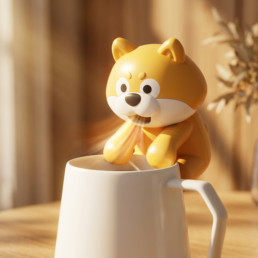 An adorable portable cooling gadget that attaches to cups—perfect for summer scenes or all-day refreshment.